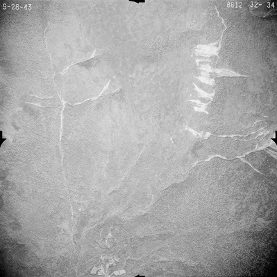 This series of aerial photographs was commissioned by the Brown Company from Fairchild Aerial Surveys, Inc. The images were captured in a North-South direction at an altitude of 12,415 ft. with a focal length of 8.25 inches, an overlap of 60% and a sidelap of 20%. The scale is 1:18,000. University of California, Santa Barbara scanned 9 inches x 9 inches photographic prints at 600 ppi using a Umax PowerLook 2100XL flatbed scanner.