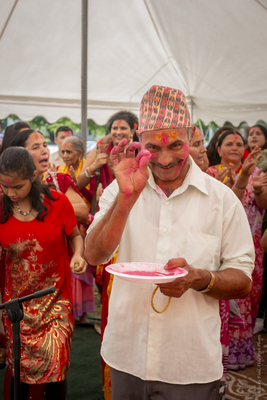 The community gathered for a celebration of Lord Krishna's birthday. Part of the celebration was putting tikka on foreheads (even the photographer's).