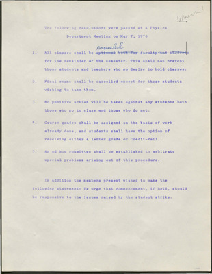 Strike Daily: Physics Resolutions from Department Meeting, May 7, 1970