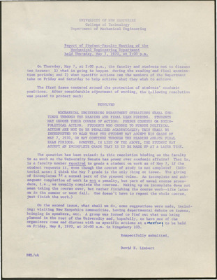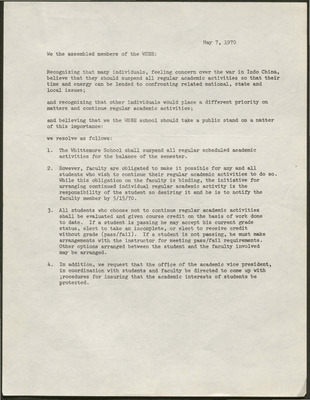 Strike Daily: WSBE (Whittemore School of Business) Resolutions from Department Meeting, May 7, 1970