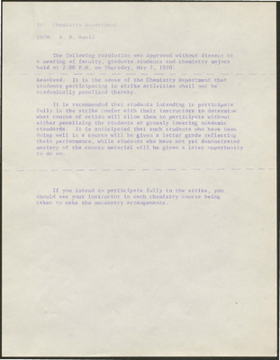 Strike Daily: Chemistry Resolutions from Department Meeting, May 7, 1970