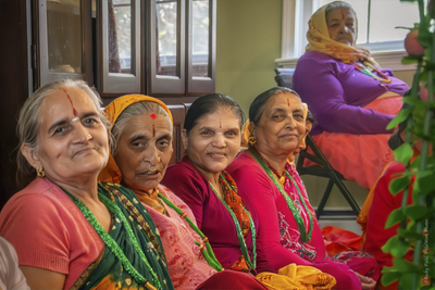 Women sat on the side of the room were Hindu priests were performing ceremonies to bless a new house.