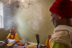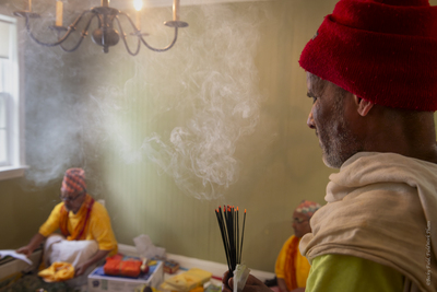 Hindu priests performed ceremonies with incense and holy texts during a daylong blessing of a new home.