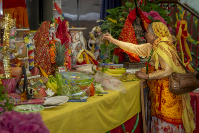 A Bhutanese woman made an offering at the shrine set up for the purana celebration.