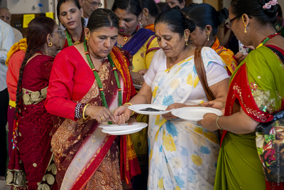 Women passed around black sesame seeds as part of the purana celebration. The seeds are considered a source of purity and cleansing.