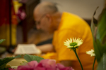A Hindu priests read the holy text. Flowers and greenery were prominent in the ceremonies.