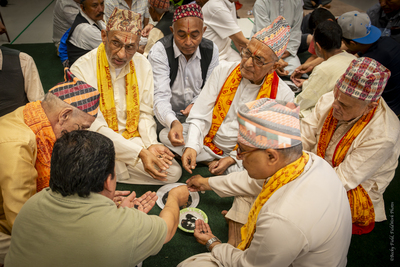 Men took black sesame seeds as part of the purana celebration. The seeds are considered a source of purity and cleansing.