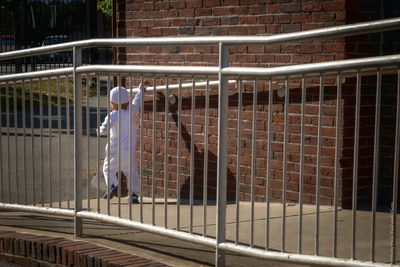 The Muslim community had gathered in a local athletic field to celebrate Eid al-Adha, the festival ending the Hajj pilgrimage season. This boy was heading home afterwards.